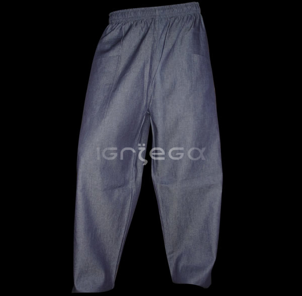 Jean 7 oz. color azul, consultar otros colores; elástico con cordón en cintura; tres bolsillos.