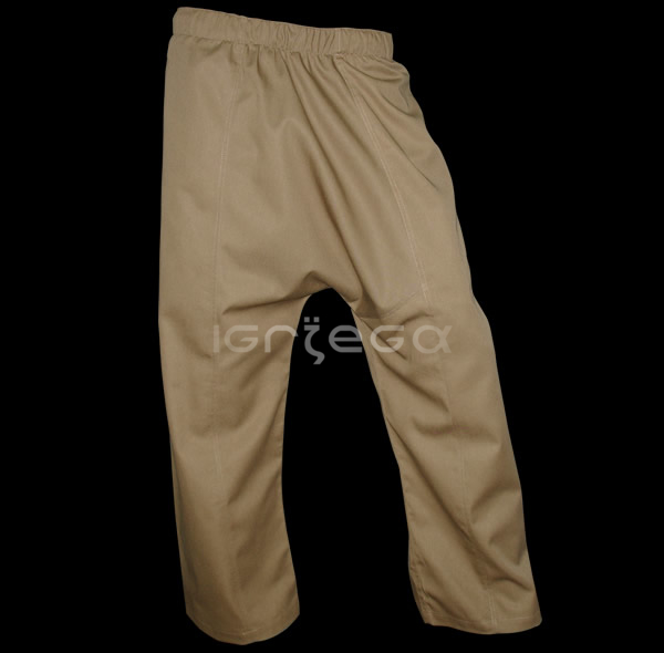 Gabardina de 6 oz. o Poplin de algodón y polyester, colores varios, elástico con cordón en cintura, sin bolsillos.